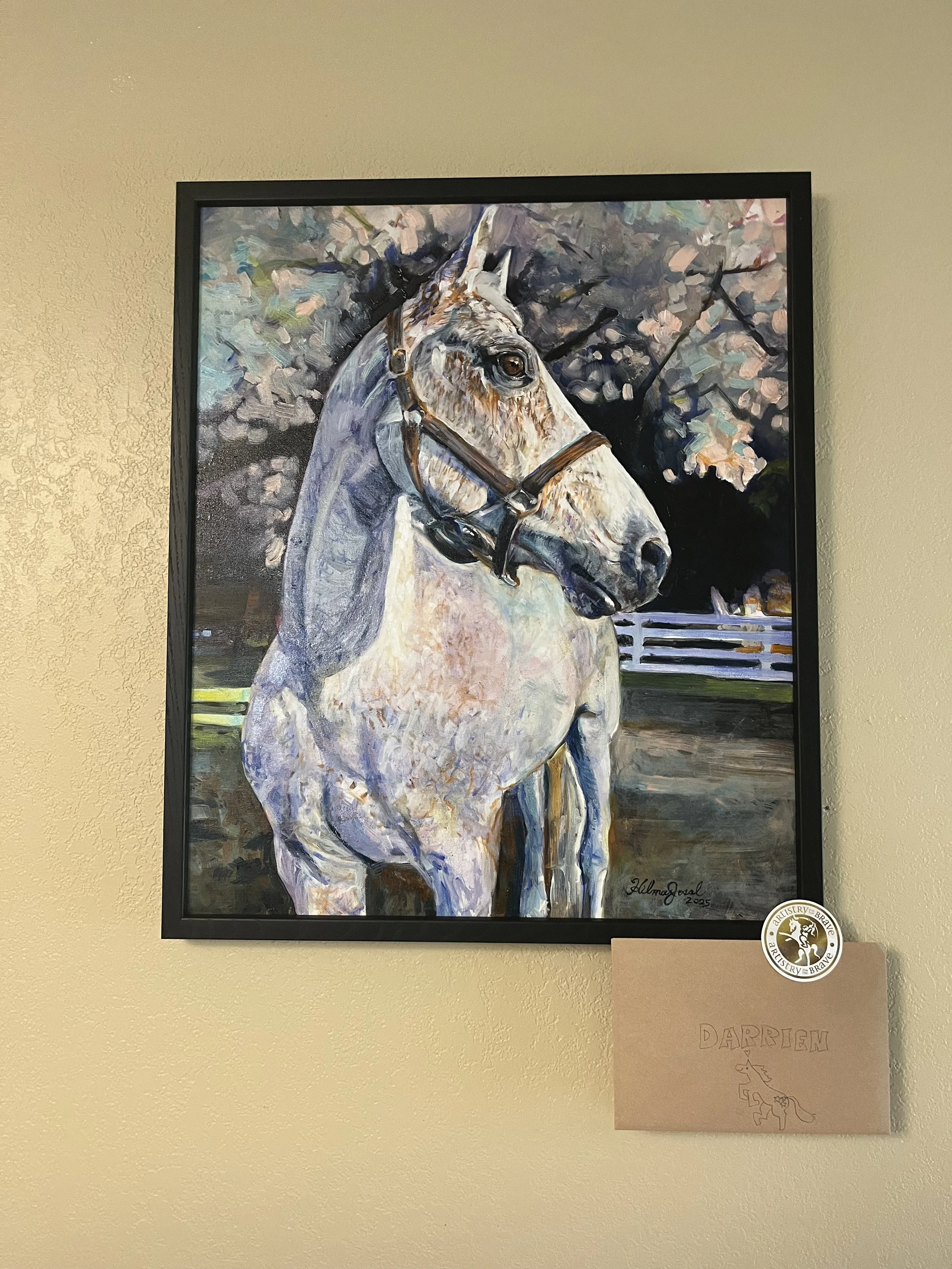 This is a surprise for Darrien for when she gets back from Alaska. Her beloved soul mate will be on the viewing room wall at our barn. Hope she likes it.