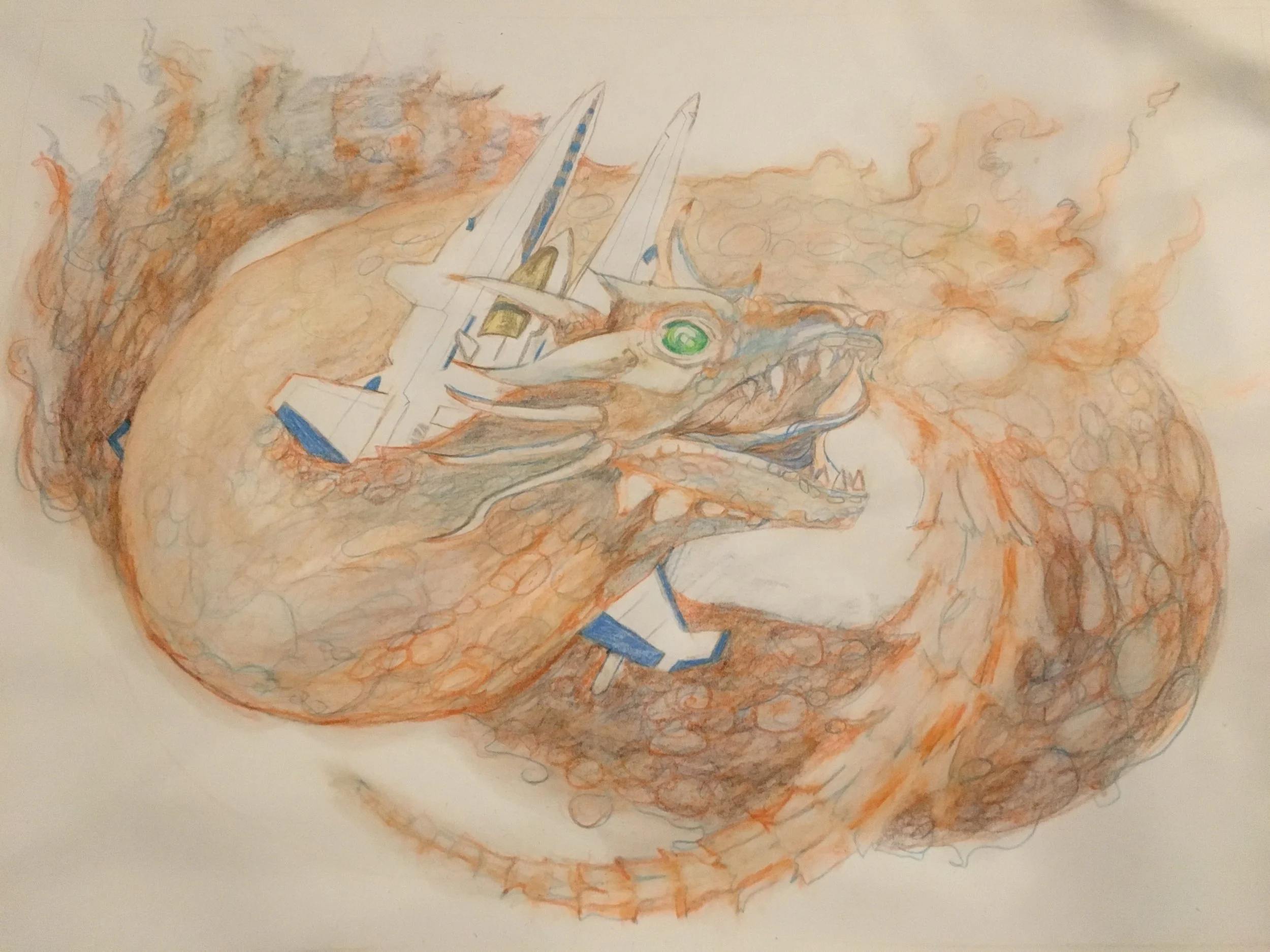 Here's my progress today. I am wondering what to do about the background. In the game it's black. Maybe I'll do that with stars and the dragon glowing with loose embers.