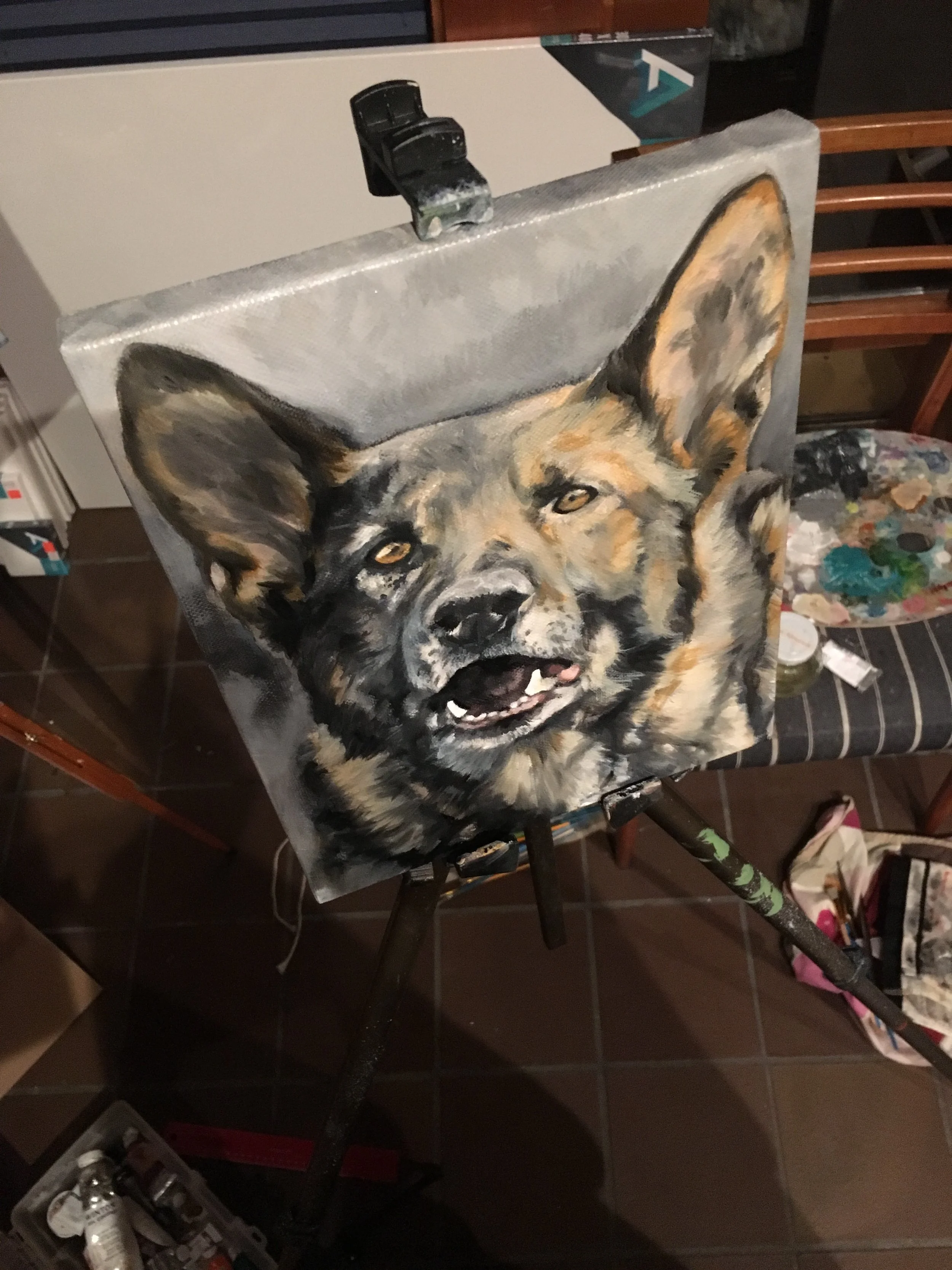 I noticed that if I take a pic of my painting from up high, the dog looks better. Is the aspect ratio of the original off? Hope he still likes it and thinks it looks like his dog.